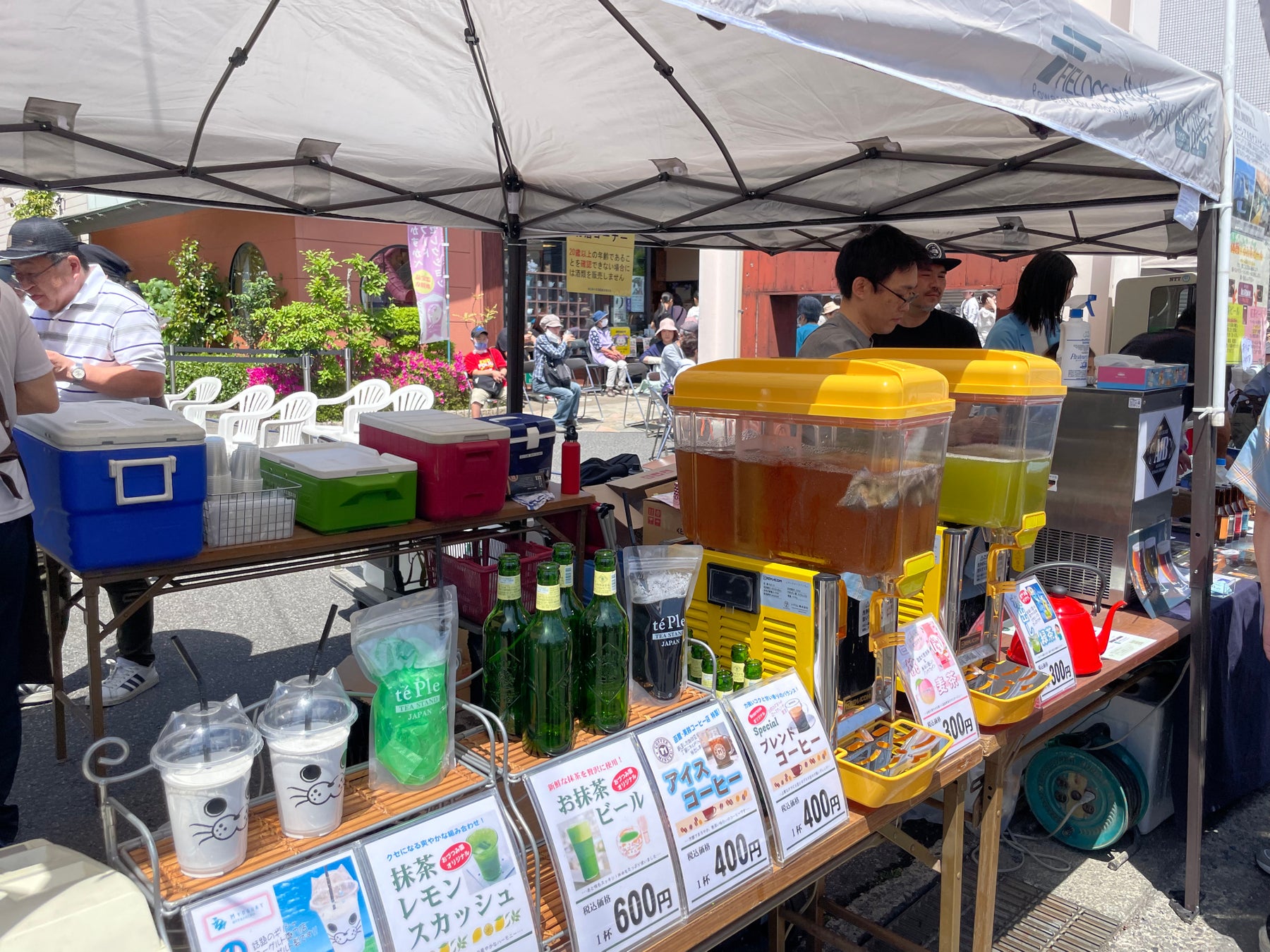 おづつみ園からは「抹茶ビール」「桃風味の麦茶」に加えて「摘みたて新茶の無料接待」